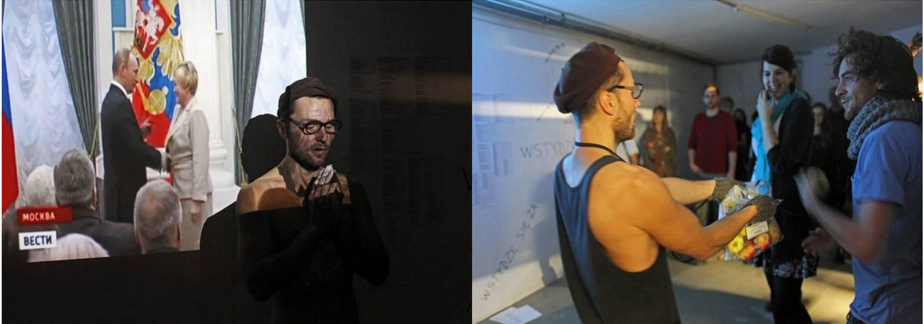 This banner, in our opinion, doesn’t have to lie idle. So we offer you to think of its fate: hang it and see the reaction of the people, government and police; who removes it and when, walk around the city and stand in a single picket or sew clothes of it and make "anti-fashion show" in urban space...