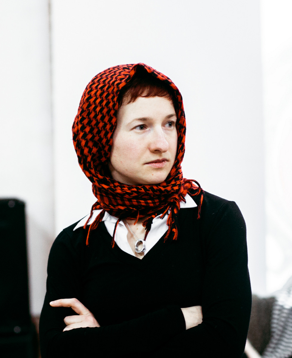 The clothes manufacturing cooperative Shvemy was established in St. Petersburg in 2015 as a dissertation project by students of the School for Engaged Art. The group currently comprises Maria Lukyanova (b. 1987, Volzhsky, Russia), Anna Tereshkina (b. 1986, Omsk, Russia), Antonina Melnik (b. 1988, Kiev, Ukraine), and Olesya Panova (b. 1988, Novosibirsk, Russia). Shvemy is simultaneously an art and an activist project, built on the model of an alternative economic structure. Its members regularly hold master classes on recycling and upcycling clothes. Shvemy have shown their work in Russia, Ukraine and internationally. Their group exhibitions include Garazhe Triennial of Russian contemporary art (2017);“Textus”: embroidery, textile and feminism. Visual Culture Research Center, Kiev (2017); Female TSEKH-2016, TSEKH Exhibition Space, Minsk (2016). Amonth their personal exhibitions there are “The 9-th dream of sewing cooperative’s collective body”, Rosa’s House of culture, St.Petersburg (2016); Pakkasukko Putinia vastaan III Festival, Helsinki (2016); traveling actionist laboratory Not Peace, Moscow, St. Petersburg, Kiev (2015–2016); MediaImpact Festival of Activist Art, Moscow (2015, 2016); and 2nd Kiev Biennial of Contemporary Art, Kiev (2015).